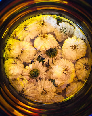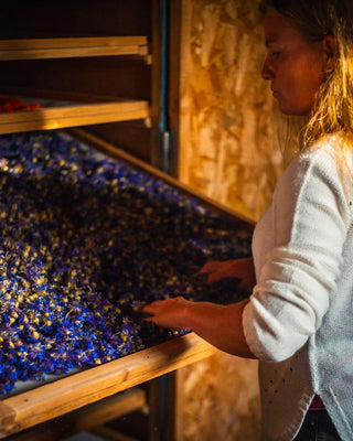 Après les récoltes, nous révélons les principes actifs des plantes à travers divers procédés d’extraction végétale doux et naturels. En fonction des différentes galéniques que nous souhaitons mettre en œuvre, nous utilisons : la macération huileuse solarisée de plantes, la macération hydro-alcoolique, le séchage à température contrôlée puis le broyage mécanique pour l’obtention des poudres, ainsi que la distillation basse pression par entraînement à la vapeur d’eau pour les hydrolats. Nous associons ensuite nos différents extraits de plantes pour créer des soins botaniques à la fois efficients et sensoriels.