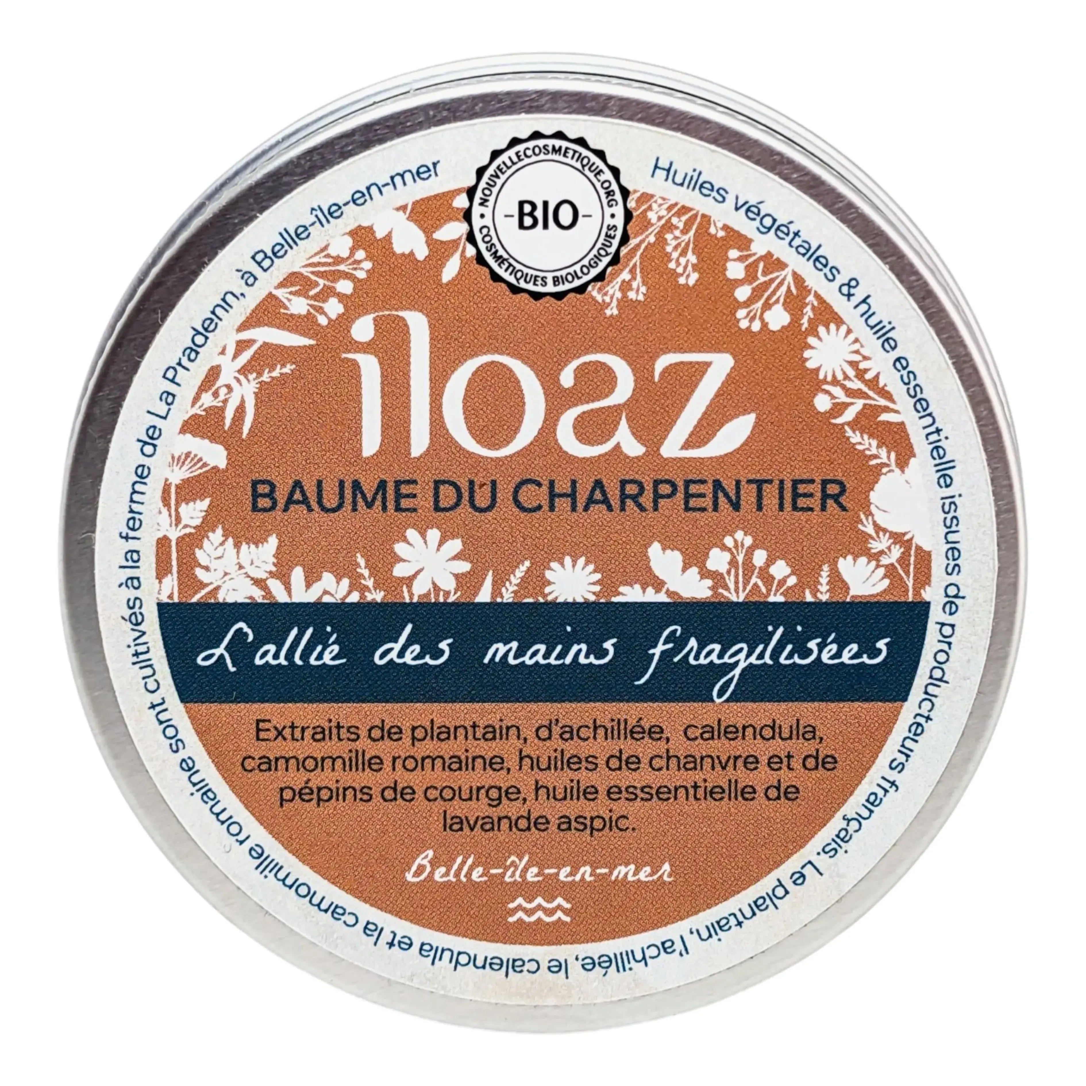 Le baume du charpentier Iloaz allie la puissance des fleurs de calendula, d’achillée millefeuille, de camomille et des feuilles de plantain de Belle-île-en-mer, avec des ingrédients végétaux naturels hautement sélectionnés. Les procédés d’obtention de ces ingrédients préservent les principes actifs des plantes, tout en respectant l’environnement. Le circuit court et les partenariats avec d’autres agriculteurs engagés sont systématiquement privilégiés.