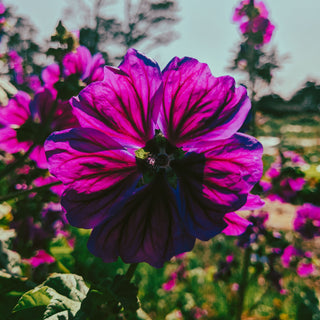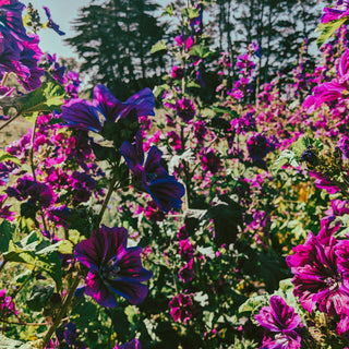 Au coeur de nos formules végétales, retrouvez les plantes médicinales que nous cultivons en Bretagne, sur l'île de Belle-île-en-mer. Nous semons la mauve début mars dans notre pépinière. Elle est ensuite plantée en avril en plein champ. Les pieds peuvent atteindre plus d'un mètre de haut. Les fleurs, très appréciées des abeilles, sont récoltées chaque jour en été.