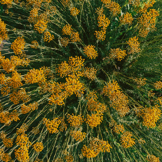 L’hélichryse (helichrysum italicum), de son autre nom vernaculaire « immortelle », est une plante de jouvence. Les fleurs d’hélichryse possèdent des bienfaits antioxydants qui aident à préserver la peau des effets du temps. Les sommités fleuries d’hélichryse sont prélevées dans notre champ en été, lorsqu’elles sont gorgées de soleil et qu’elles émanent une douce odeur de miel. Elles infusent ensuite doucement dans de l'huile végétale qui extrait une partie de leurs bienfaits. C'est avec cette huile chargée de la plante que nous fabriquons l'oléo-sérum.